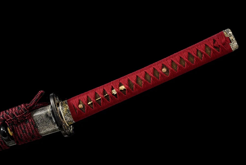 De Akai Kiba Katana belichaamt de pure Japanse traditie en combineert elegantie, kracht en ambachtelijk vakmanschap. Met de hand gesmeed uit T10 koolstofstaal onderscheidt dit zwaard zich door de hoge kwaliteit van de afwerking en de perfecte balans van het lemmet. De licht schuine rode handgreep is een authentiek kenmerk van echte Japanse katana’s. Deze subtiele helling, ontstaan door een nauwkeurige handmatige passing tussen lemmet en greep (nakago en tsuka), zorgt voor een natuurlijkere grip en betere controle over de beweging, waardoor het hanteren vloeiender en stabieler aanvoelt.